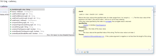Es muy útil fijarse en el formato que tiene la documentación de métodos y constructores ya existentes en la API de Java. Basta con situar el cursor del ratón encima de algún método o constructor.